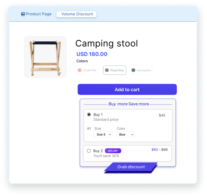 Auto-apply tierred discount base on quantity, shown below Add To Cart button so shoppers see more value when they buy